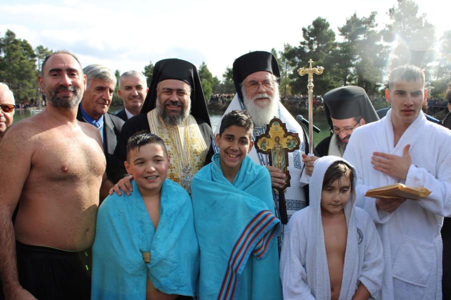 Στη λίμνη συναγωνίσθηκαν για την λήψη του Τιμίου Σταυρού μικρή ομάδα αγοριών.