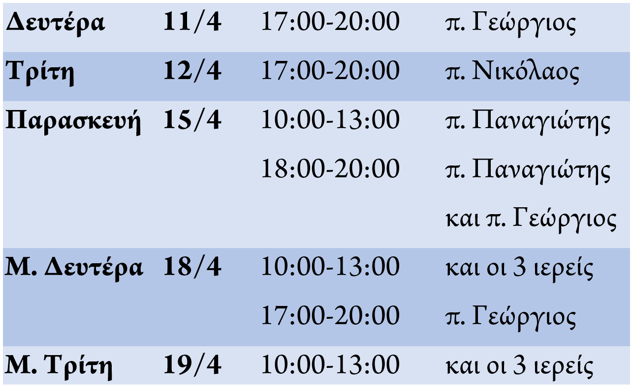 Πέραν αυτών των ωρών δεν θα είναι δυνατόν να τελεστεί το μυστήριο.