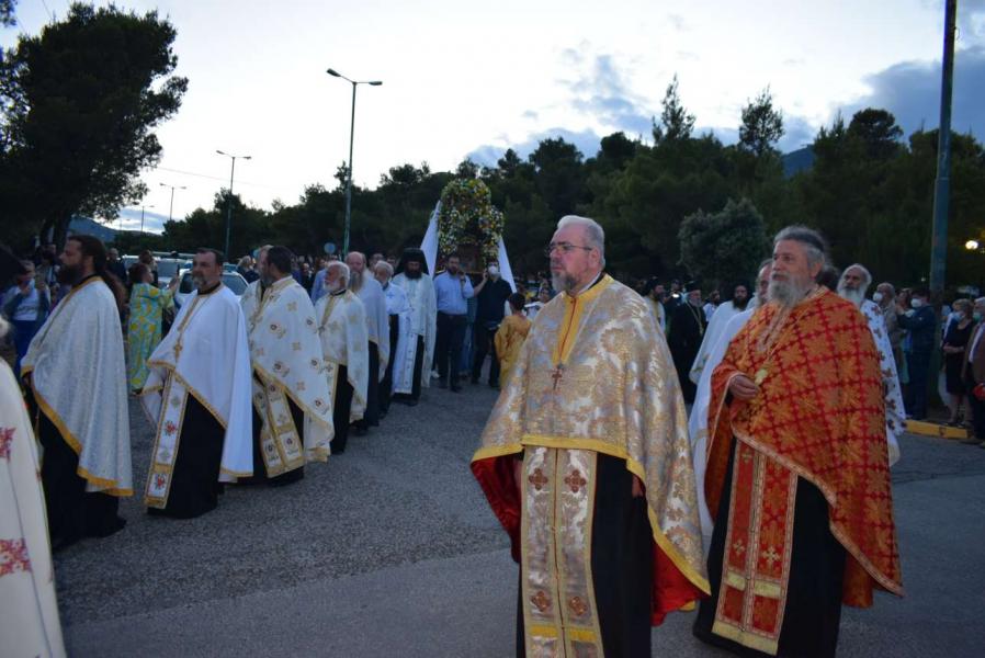 Με συμμετοχή πλήθους κλήρου και λαού, χοροστατούντος του Σεβασμιωτάτου Μητροπολίτου Ιλίου, Αχαρνών και Πετρουπόλεως κ. Αθηναγόρου και προεξαρχόντων του Αναπληρωτή Υπουργού Εσωτερικών κ. Στέλιου Πέτσα και του Δημάρχου Αχαρνών κ. Σπύρου Βρεττού, τελέστηκε ο πανηγυρικός Εσπερινός του Αγίου Πνεύματος και η λιτάνευση της Ιεράς Εικόνος.