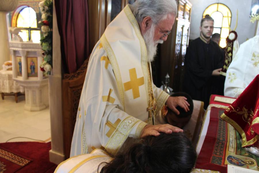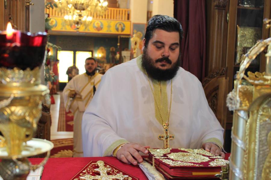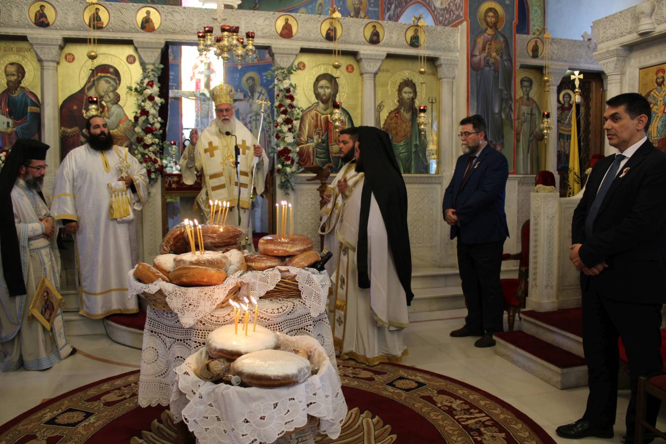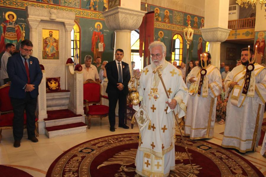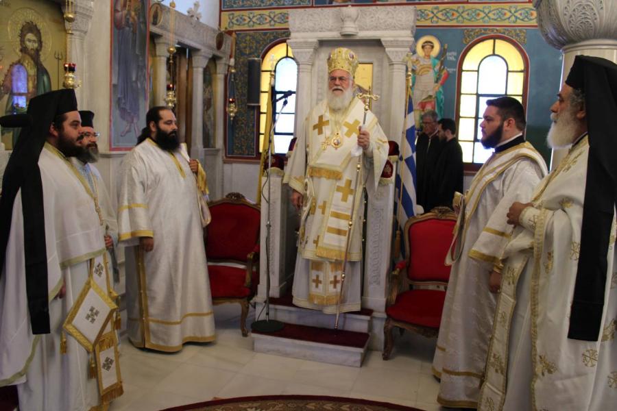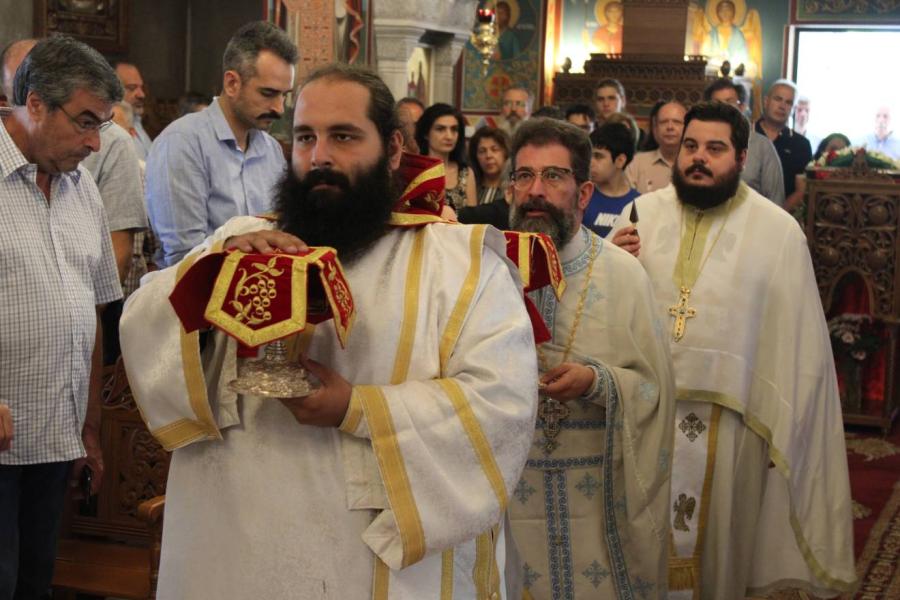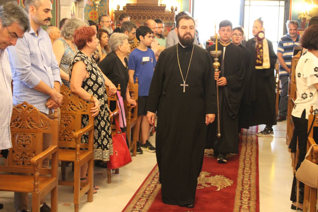 ...συμπαραστατούμενος από τους Αρχιμανδρίτες Ιωάννη Ράπτη - Γενικό Αρχιερατικό Επίτροπο της Ιεράς Μητροπόλεως, Ιάκωβο Γιοσάκη - Πρόεδρο του Εκκλ. Συμβουλίου του Ιερού Ναού, Χρυσόστομο Καλαθά - Πρόεδρο του Εκκλ. Συμβουλίου του Ιερού Ναού Αγίου Διονυσίου Αχαρνών, Μιχαήλ Γιαννακέλο - Πρόεδρο του Εκκλ. Συμβουλίου του Ιερού Ναού Κοιμήσεως της Θεοτόκου Αχαρνών και τους διακόνους του π. Άγγελο Μιχαλόπουλο και π. Καλλίνικο Ζωγράφο.