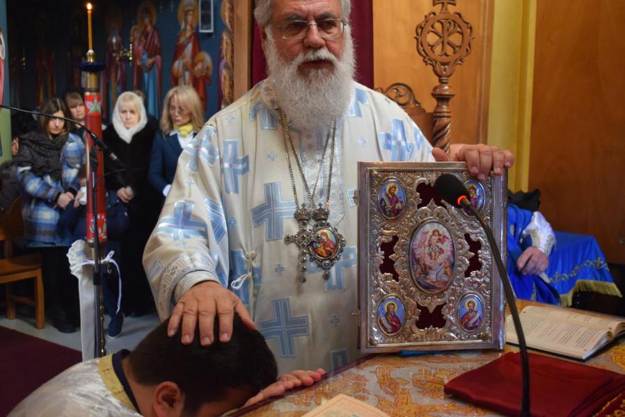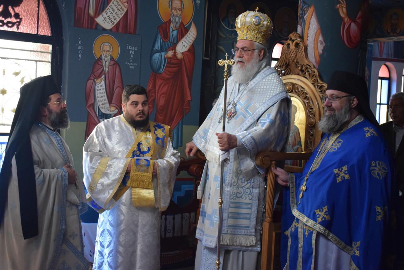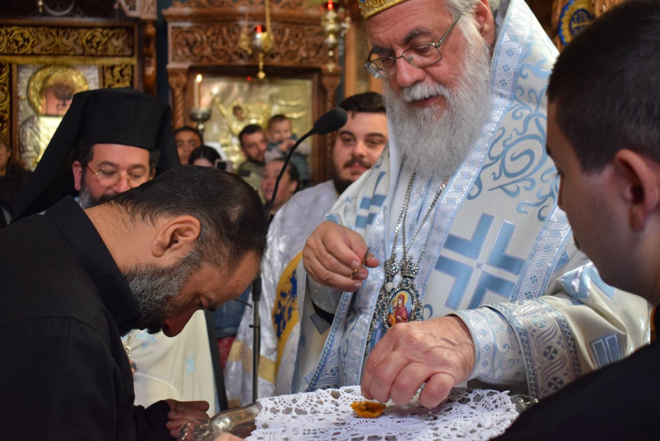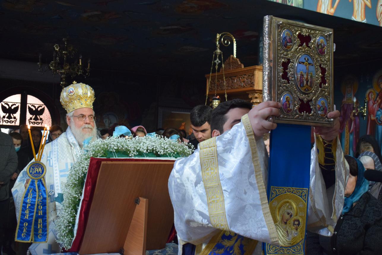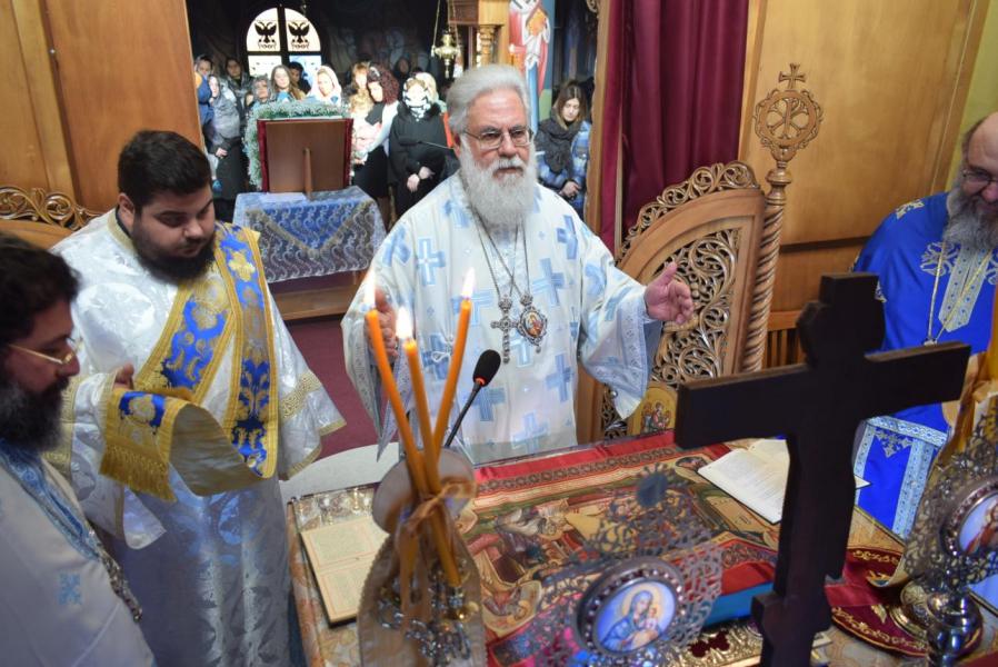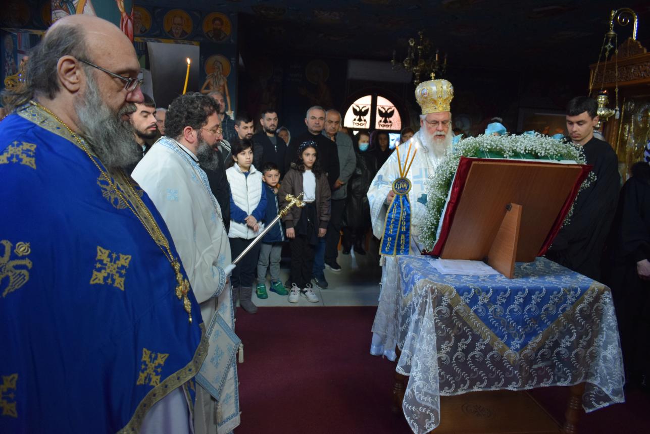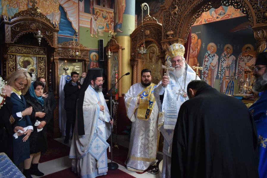 Κατά το ιουλιανό εορτολόγιο, το οποίο ακολουθείται στον εν λόγω Ιερό Ναό, ήταν η εορτή του Ευαγγελισμού της Θεοτόκου. Συλλειτουργοί του Σεβασμιωτάτου ήταν ο Γενικός Αρχιερατικός Επίτροπος Αρχιμ. Ιωάννης Ράπτης, ο μετοχιάρης της Ιεράς Μονής Αρχιμ. Ιουστίνος Χαραλαμπόπουλος και ο ιεροδιάκονος π. Μιχαήλ Γιαννακέλος.