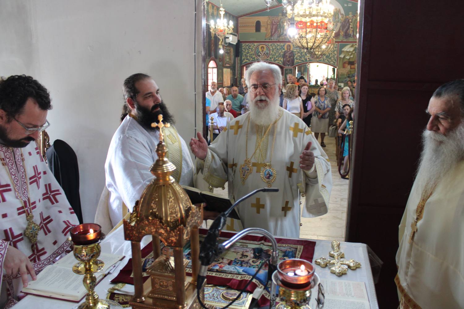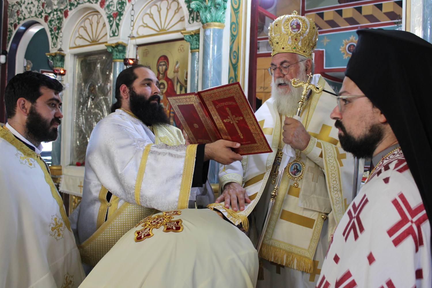 Στο τέλος της Θείας Λειτουργίας μετά την ακολουθία της ευλογίας των άρτων, ο Σεβασμιώτατος απένειμε το οφίκκιο του Πρωτοπρεσβυτέρου στον π. Αλέξανδρο για την πολυχρόνια προσφορά του στην διακονία των πιστών της ενορίας.