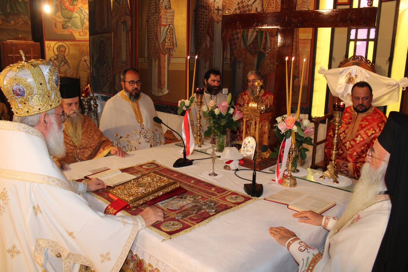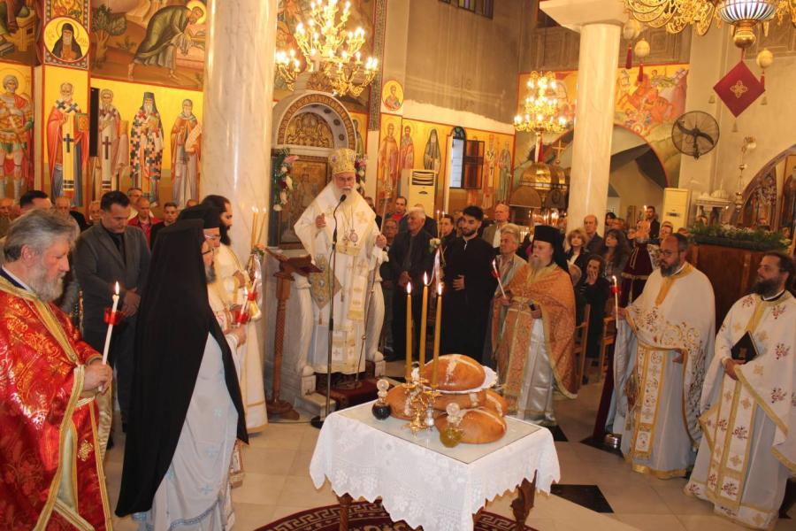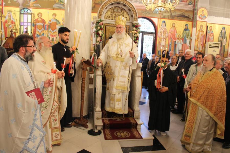 Μετά την αρτοκλασία ο Σεβασμιώτατος ομίλησε δι’ ολίγων στο εκκλησίασμα αναφερόμενος στο πρώτο εσπέριο τροπάριο του δ´ ήχου: «Τὸν ζωοποιόν σου Σταυρόν, ἀπαύστως προσκυνοῦντες Χριστὲ ὁ Θεός, τὴν τριήμερόν σου Ἀνάστασιν δοξάζομεν· δι' αὐτῆς γὰρ ἀνεκαίνισας, τὴν καταφθαρεῖσαν τῶν ἀνθρώπων φύσιν Παντοδύναμε, καὶ τὴν εἰς οὐρανοὺς ἄνοδον, καθυπέδειξας ἡμῖν, ὡς μόνος ἀγαθὸς καὶ φιλάνθρωπος», στη στενή σχέση του Σταυρού και της Ανάστασης, που έδωσαν τη δυνατότητα της ανόδου μας πάλιν εις τον ουρανό. Αυτή την σχέση Σταυρού-Ανάστασης την πρόβαλε στον πρόσωπο του Aγίου Γεωργίου, ο οποίος δια του μαρτυρίου του κέρδισε την Ανάσταση, ενώ παραμένει οδηγός όλων μας προς την άνω ζωή.