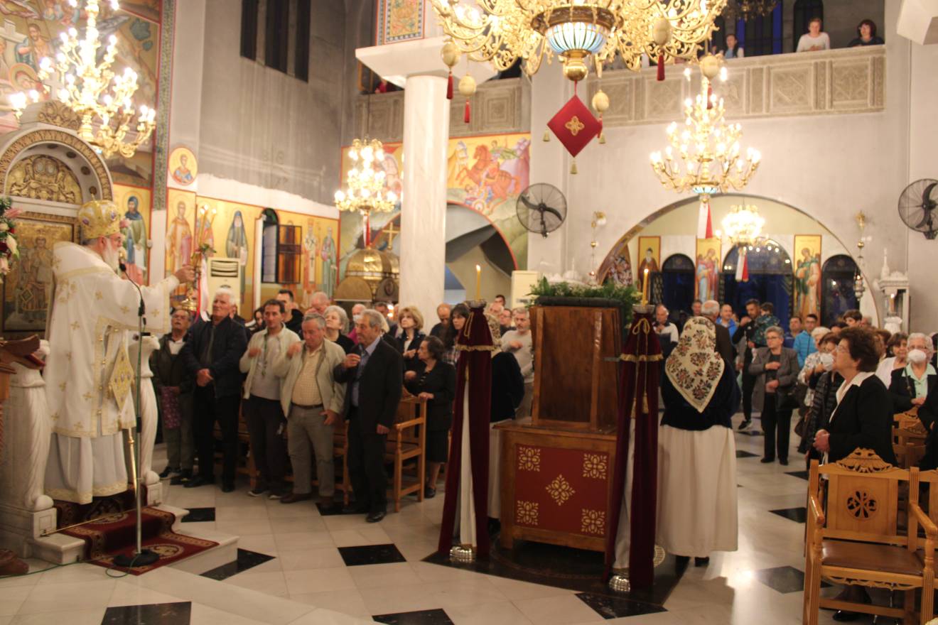 Στο τέλος της ακολουθίας ευχήθηκε στους παρόντες πιστούς συμμετοχή στο φως της Αναστάσεως του Χριστού μας.