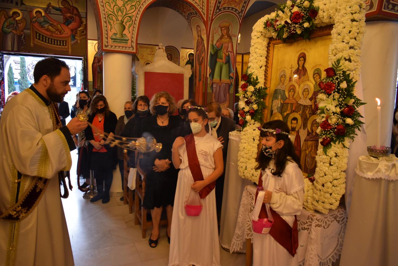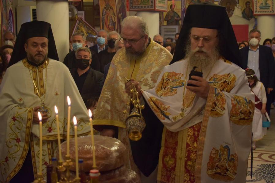 Στον Ιερό Ναό Αγίων Μυροφόρων γυναικών και Νικοδήμου τελέστηκε ο πανηγυρικός Εσπερινός της εορτής, χοροστατούντος του Σεβασμιωτάτου Μητροπολίτου Ιλίου κ. Αθηναγόρου, το Σάββατο 7 Μαΐου 2022.