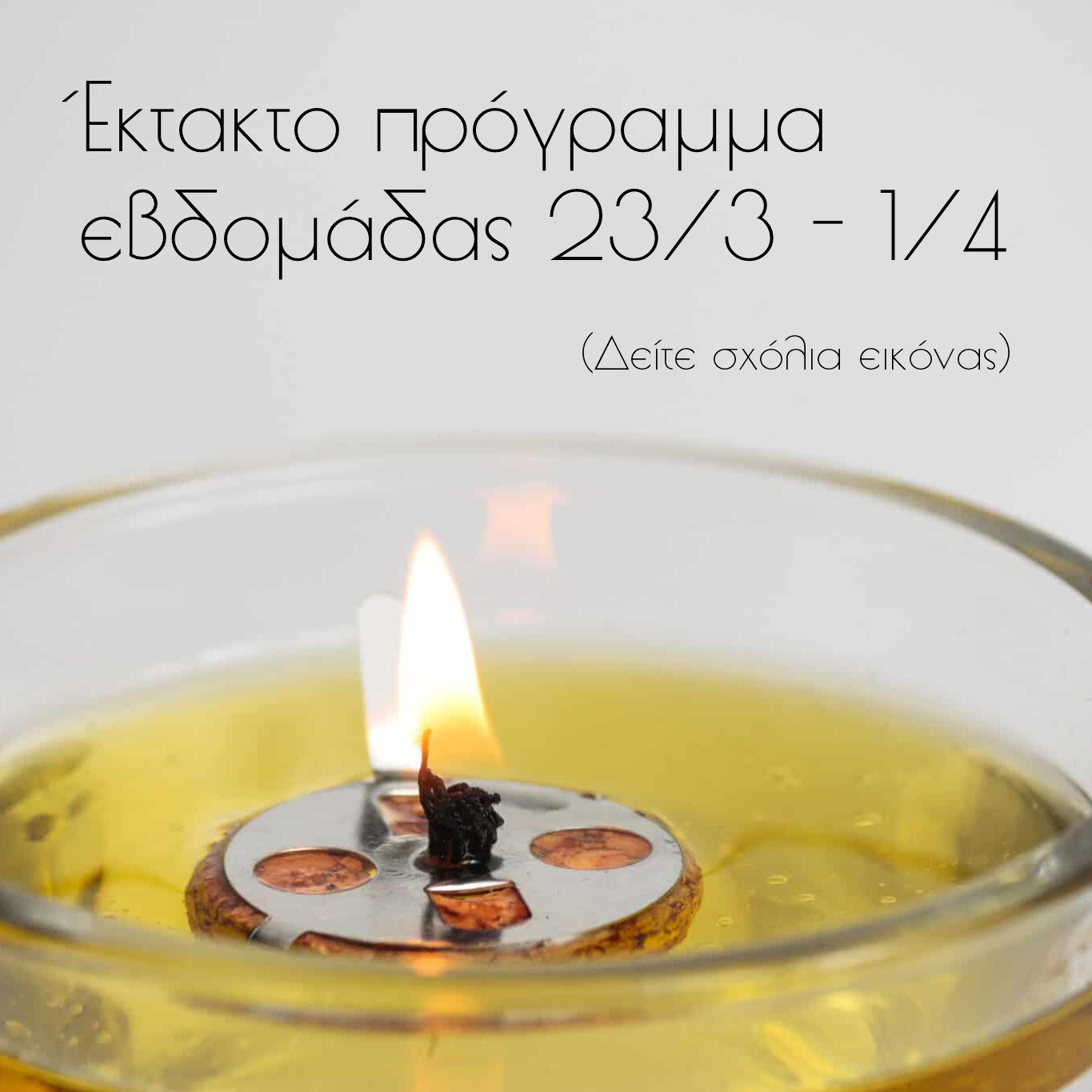 • Τετάρτη 29/3, 07:00 μόνο, δεν τελείται το απόγευμα