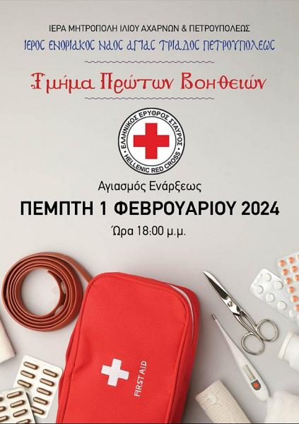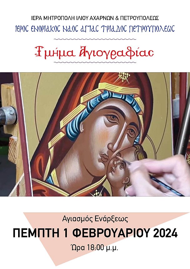 - Ο Αγιασμός Έναρξης των μαθημάτων Αγιογραφίας και Πρώτων Βοηθειών υπό την αιγίδα του Ελληνικού Ερυθρού Σταυρού, την Πέμπτη 1 Φεβρουαρίου και ώρα 18:00.