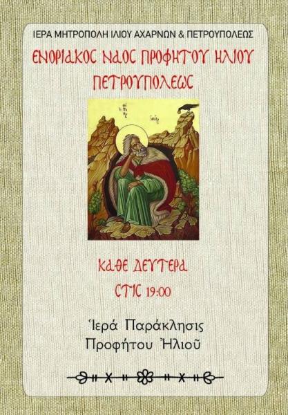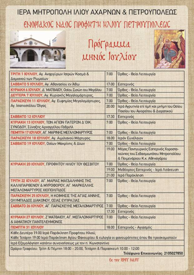 Πρόγραμμα ακολουθιών Ιουλίου 2025 ενορίας Προφήτου Ηλιού Πετρ.