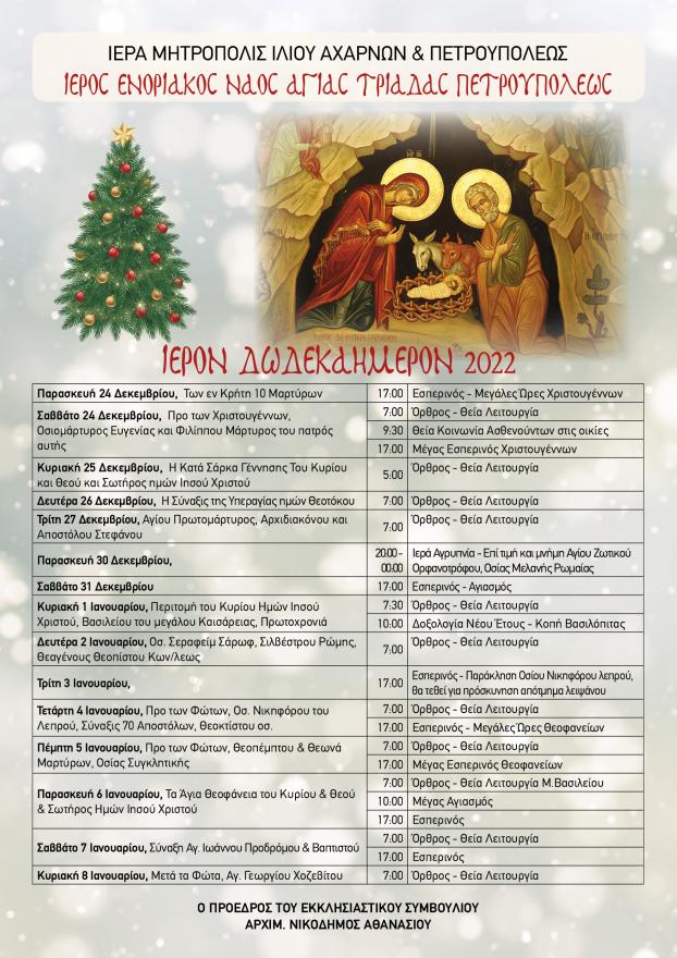 Πρόγραμμα Δωδεκαημέρου 2022 στην Αγία Τριάδα Πετρουπόλεως