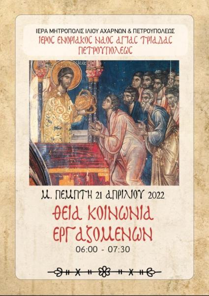 - Η Θεία Κοινωνία το πρωί της Μεγάλης Πέμπτης.