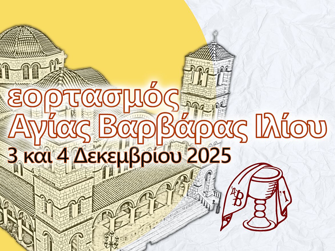Την Τετάρτη 3 και την Πέμπτη 4 Δεκεμβρίου 2025 θα διεξαχθεί η πανήγυρις της προστάτιδας της ενορίας της Αγίας Βαρβάρας Ιλίου.