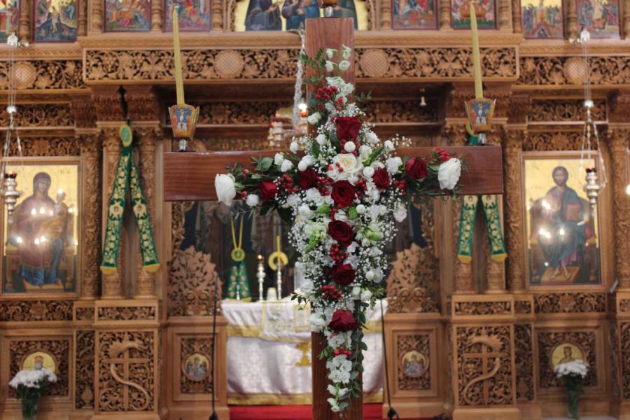 Πριν το τέλος της Θείας Λειτουργίας έγινε η λιτανευτική πομπή του Τιμίου Σταυρού και η απόθεσή του σε ευπρεπισμένο τραπεζάκι, όπου και εψάλη το τροπάριο «Σῶσον Κύριε τὸν λαόν σου» και ο στίχος: «Τὸν Σταυρόν σου προσκυνοῦμεν Δέσποτα, καὶ τὴν ἁγίαν σου Ἀνάστασιν δοξάζομεν».