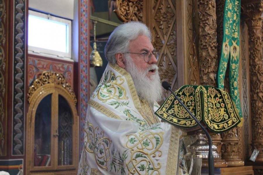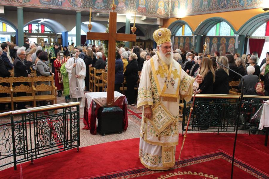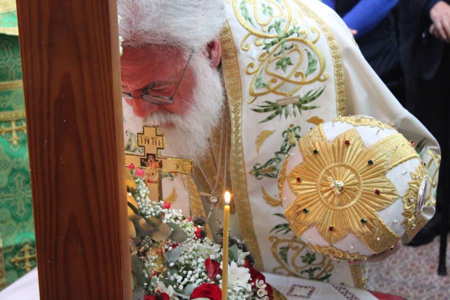 Πριν την Οπισθάμβωνο ευχή ο Σεβασμιώτατος με αφορμή τον πέμπτο ειρμό του κανόνα του Σταυρού: «Ὀρθρίζοντες σὲ ἀνυμνοῦμεν, Σωτὴρ τοῦ Κόσμου εἰρήνην, εὑράμενοι τῷ Σταυρῷ σου, δι οὗ ἀνεκαίνισας, τὸ γένος τὸ ἀνθρώπινον, φῶς πρός ἀνέσπερον ἄγων ἡμᾶς» ανέλυσε το σημείο του Σταυρού, την ειρήνη που χαρίζει ο ειρηνοποιός Χριστός και το ανέσπερο φως της Αναστάσεως, στο οποίο οδηγεί η σταυρική θυσία του Χριστού μας με αποτέλεσμα την ανακαίνιση του ανθρωπίνου γένους, την λύτρωσή του από την αμαρτία και τον θάνατο και την αποκατάστασή του ως τέκνο του Θεού στον νέο Παράδεισο της Βασιλείας Του, την Εκκλησία Του.