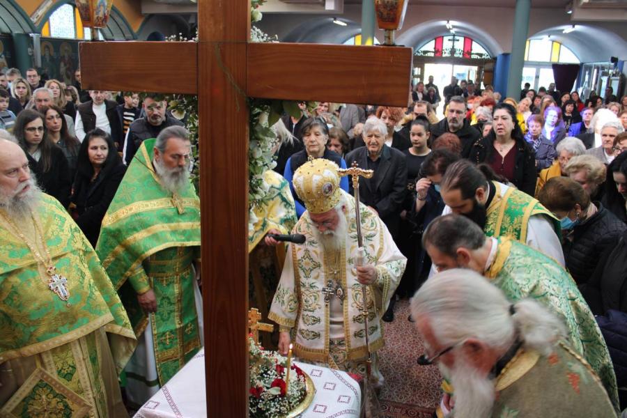 Την Κυριακή της Σταυροπροσκυνήσεως 23 Μαρτίου 2025 ο Σεβασμιώτατος Μητροπολίτης Ίλιου, Αχαρνών και Πετρουπόλεως κ. Αθηναγόρας χοροστάτησε στον Όρθρο και τέλεσε την Θεία Λειτουργία στον Ιερό Ναό του Αγίου Νικολάου στο Καματερό, συμπαραστατούμενος από τους αρχιμανδρίτες Αγαθάγγελο Κόκλα - Ιεροκήρυκα της Ιεράς Μητροπόλεως και Χρύσανθο Λιόλιο - Πρόεδρο του Εκκλ. Συμβ. του Ιερού Ναού, τους συνεφημερίους του π. Διονύσιο Λαζαρίδη, π. Μιχαήλ Κοκκινάκη και π. Ντούσαν Μπούρσατς και τους διακόνους του π. Άγγελο Μιχαλόπουλο και π. Εμμανουήλ Μαρκουδάκη.