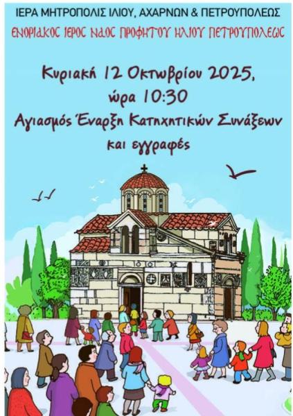 Ξεκινούν οι κατηχητικές δράσεις και συνάξεις της ενορίας Προφήτου Ηλιού Πετρουπόλεως.