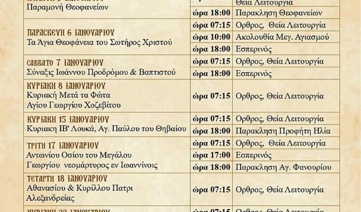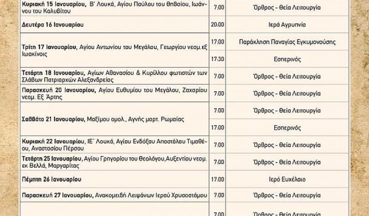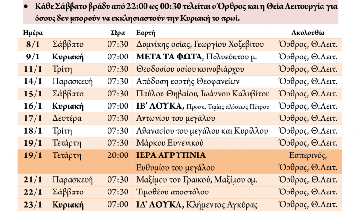 Πρόγραμμα ακολουθιών Ιανουαρίου 2023 Αγ. Τριάδας Πετρ.