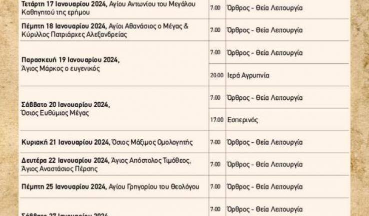 Πρόγραμμα ακολουθιών Ιανουαρίου 2024 Αγ. Τριάδας Πετρ.