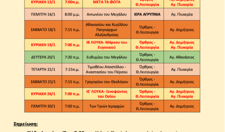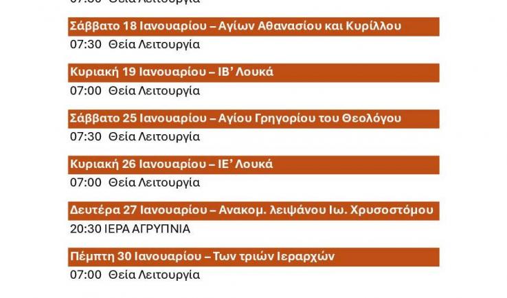 Πρόγραμμα ακολουθιών Ιανουαρίου 2025 Αγ. Δημητρίου Πετρ.