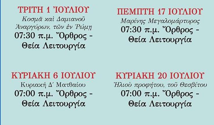 Πρόγραμμα ακολουθιών Ιουλίου 2022 ενορίας Αγ. Βαρβάρας Ιλίου