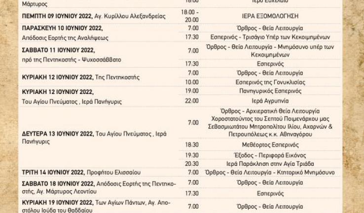 Πρόγραμμα ακολουθιών Ιουνίου 2022 ενορίας Αγ. Τριάδας Πετρ.