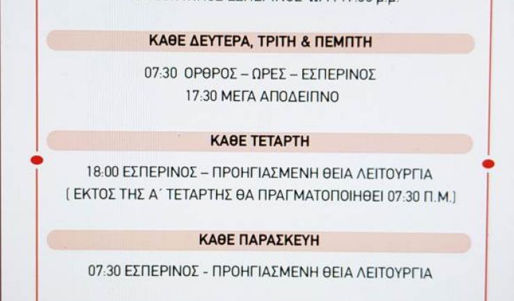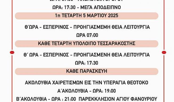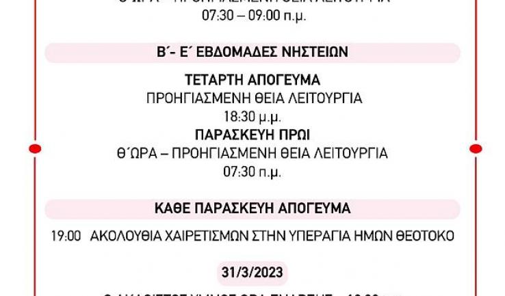 Πρόγραμμα ακολουθιών Μ. Τεσσαρακοστής στην Αγία Τριάδα Πετρ.
