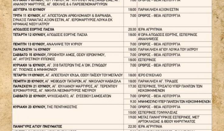 Πρόγραμμα ακολουθιών Ιουνίου 2023 ενορίας Αγ. Τριάδας Πετρ.