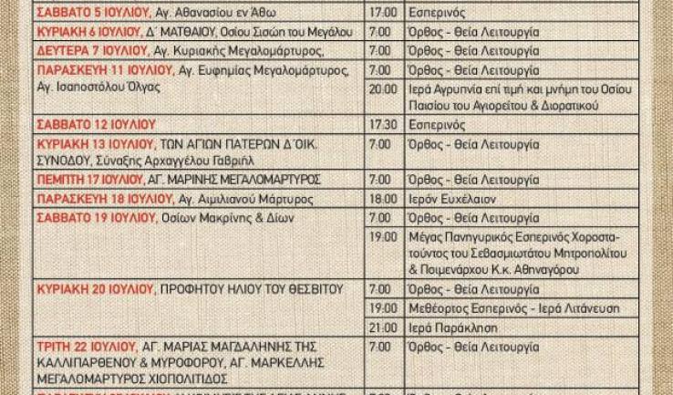 Πρόγραμμα ακολουθιών Ιουλίου 2025 ενορίας Προφήτου Ηλιού Πετρ.