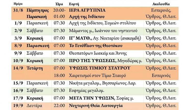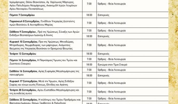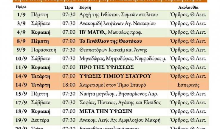 Πρόγραμμα ακολουθιών Σεπτεμβρίου 2024 ενορίας Αγίου Διονυσίου Αχαρνών