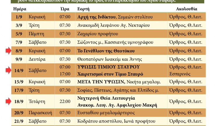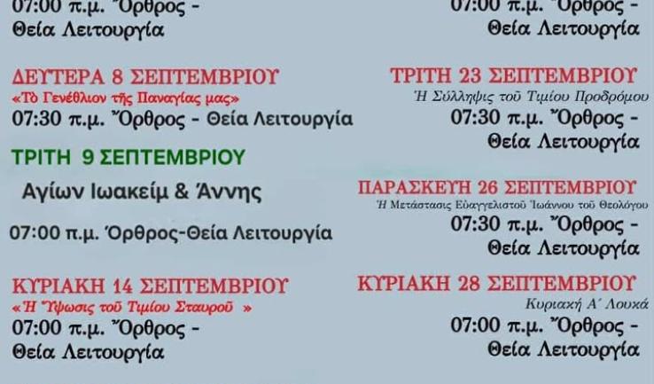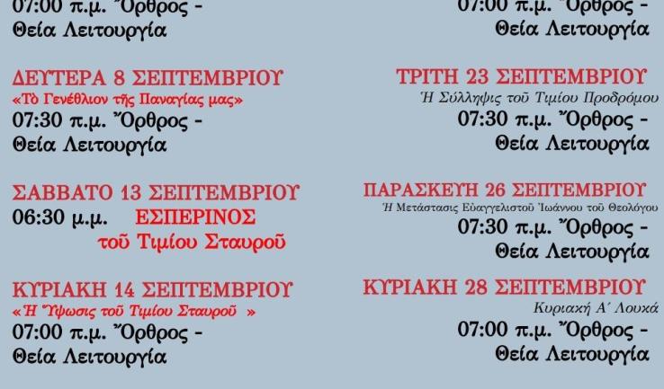Πρόγραμμα ακολουθιών Σεπτεμβρίου 2022 ενορίας Αγ. Τριάδας Πετρ.
