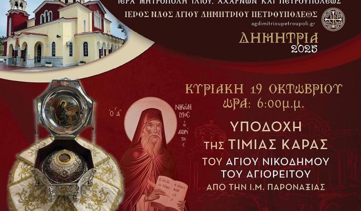 Υποδοχή τιμίας κάρας Αγ. Νικοδήμου του Αγιορείτου