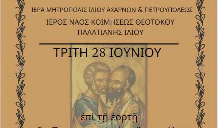 Αγρυπνία Αποστόλων Πέτρου και Παύλου στην Παναγία Παλατιανή Ιλίου