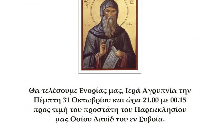 Αγρυπνία Οσίου Δαυίδ εν Ευβοία στον Άγιο Διονύσιο Ιλίου