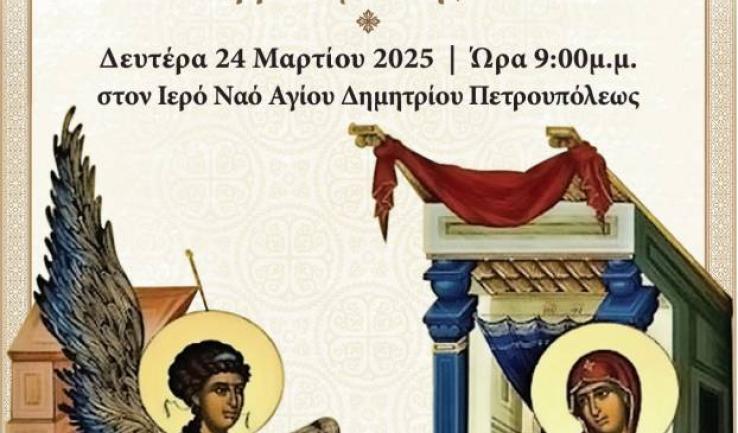Αγρυπνία Ευαγγελισμού της Θεοτόκου στον Άγιο Δημήτριο Πετρ.