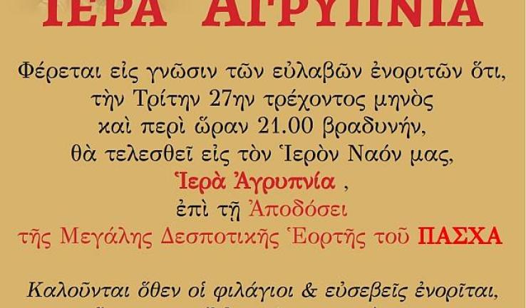 Αγρυπνία επί τη αποδόσει του Πάσχα στην Αγ. Τριάδα Πετρ.