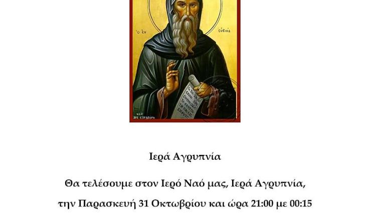 Αγρυπνία Οσίου Ευθυμίου του μεγάλου στην Αγία Βαρβάρα Ιλίου