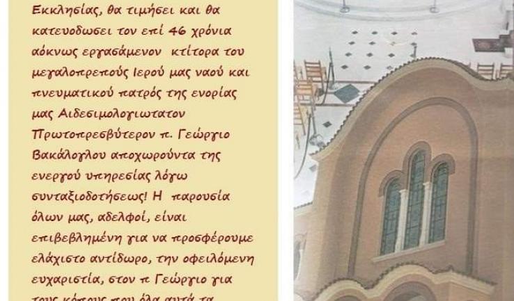 Τιμή για τον π. Γεώργιο Βακάλογλου
