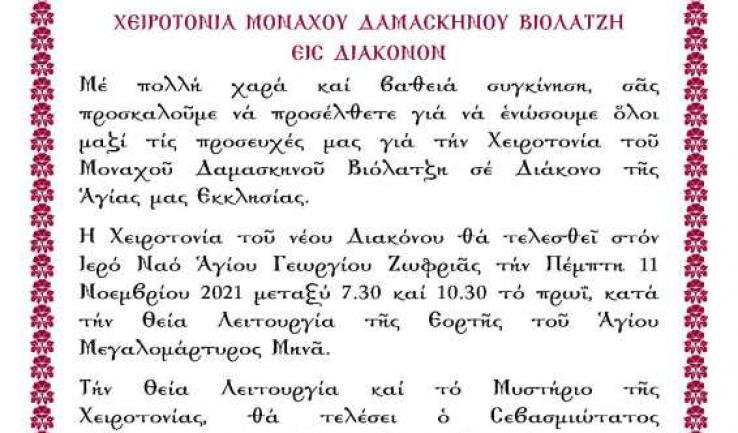 Εις πρεσβύτερον χειροτονία π. Νεκταρίου Τριβέλλα
