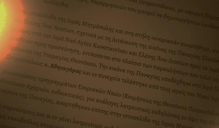 Ανακοίνωση Ιεράς Μητροπόλεως