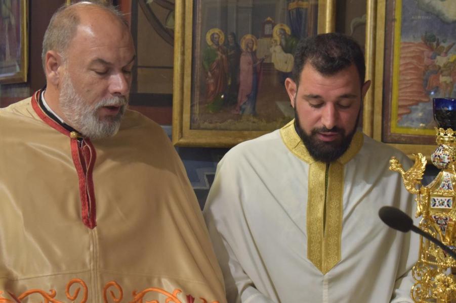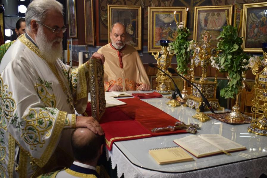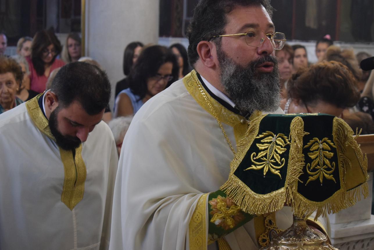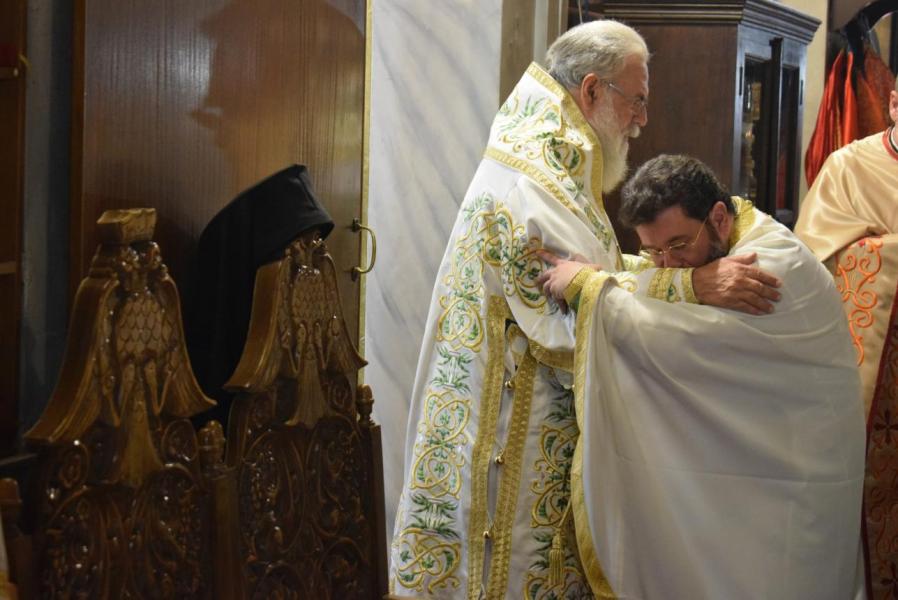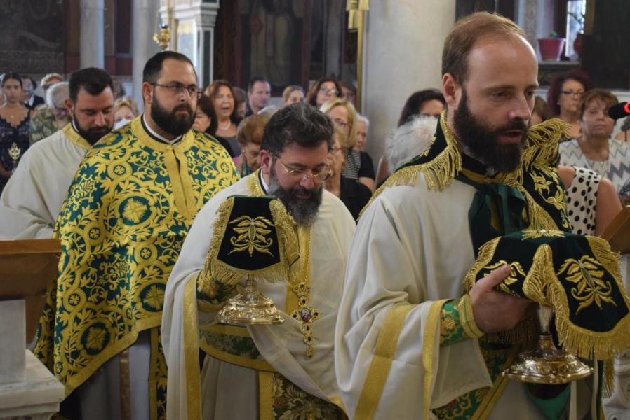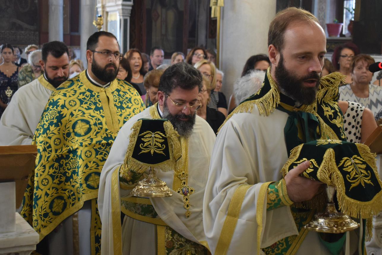 Συλλειτουργοί του ήταν ο Γενικός Αρχιερατικός Επίτροπος της Μητροπόλεως Αρχιμ. Ιωάννης Ράπτης, οι εφημέριοι του Ιερού Ναού π. Γεώργιος Χαλκιάς και π. Μιχαήλ Καρ, καθώς και οι διάκονοι π. Κωνσταντίνος Μανώλης και π. Νικόδημος Μαλαματένιος.