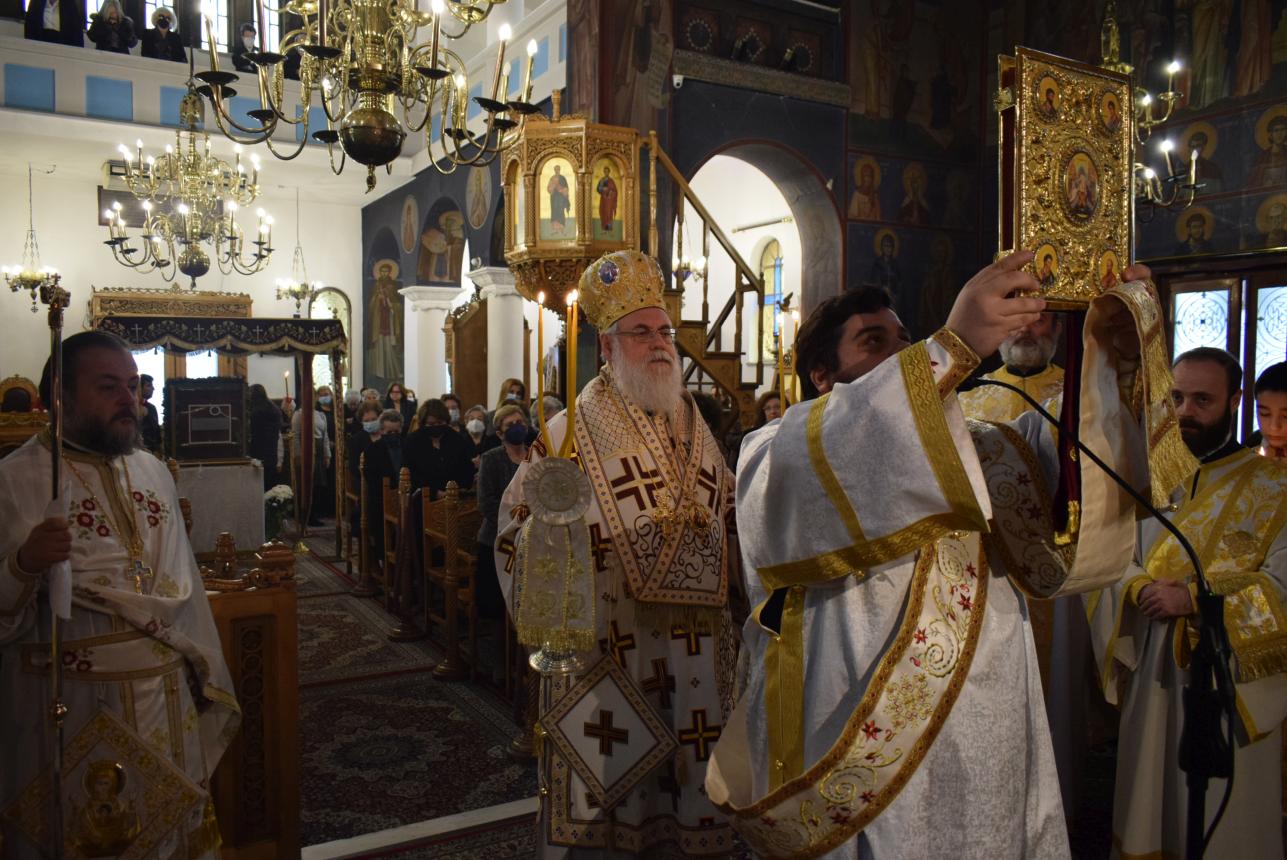 Την Ε' Κυριακή των Νηστειών ο Σεβασμιώτατος Μητροπολίτης Ιλίου κ. Αθηναγόρας λειτούργησε στον Ιερό Ναό Αγίων Κωνσταντίνου και Ελένης Άνω Λιοσίων, με συλλειτουργούς τον Αρχιερατικό Επίτροπο Αχαρνών και Φυλής Αρχιμ. Τίτο Χρήστου, τους εφημερίους της ενορίας και τους διακόνους.