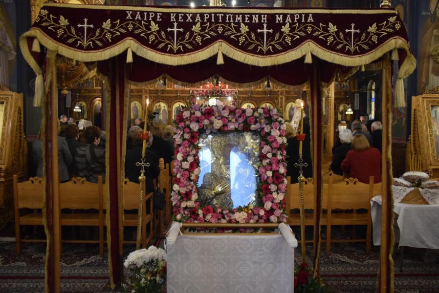 Στον ναό βρισκόταν προς προσκύνηση και αγιασμό των πιστών η εφέστιος εικόνα της Ιεράς Μονής Κλειστών, της Παναγίας Ελεούσας, μετά την πολυπληθή λιτάνευση από την Ιερά Μονή στον Ιερό Ναό το απόγευμα του Σαββάτου.