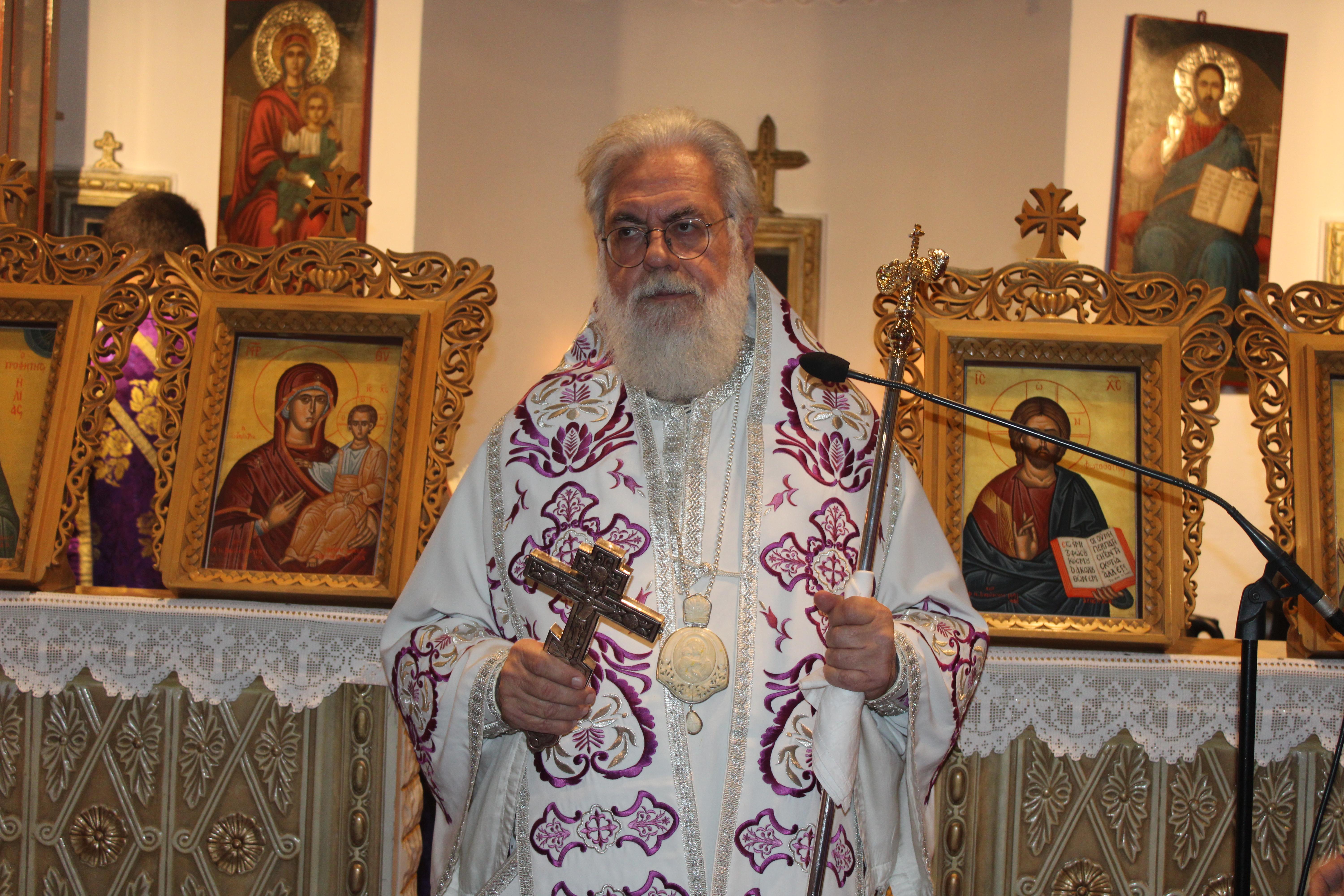 Πριν την οπισθάμβωνο ευχή ο Σεβασμιώτατος ανέλυσε το πρώτο ανάγνωσμα της ακολουθίας, το οποίο αναφερόταν στην είσοδο των διαφόρων ζώων στην Κιβωτό του Νώε, πριν τον κατακλυσμό. Την διήγηση αυτή από το βιβλίο της «Εξόδου» της Παλαιάς Διαθήκης την παρομοίωσε ως προτύπωση της νέας Κιβωτού, της Εκκλησίας του Χριστού, όπου όσοι εισέρχονται σώζονται από τις τρικυμίες και τα ναυάγια της καθημερινότητας, καθώς βρίσκονται κάτω από την προστασία του Χριστού.