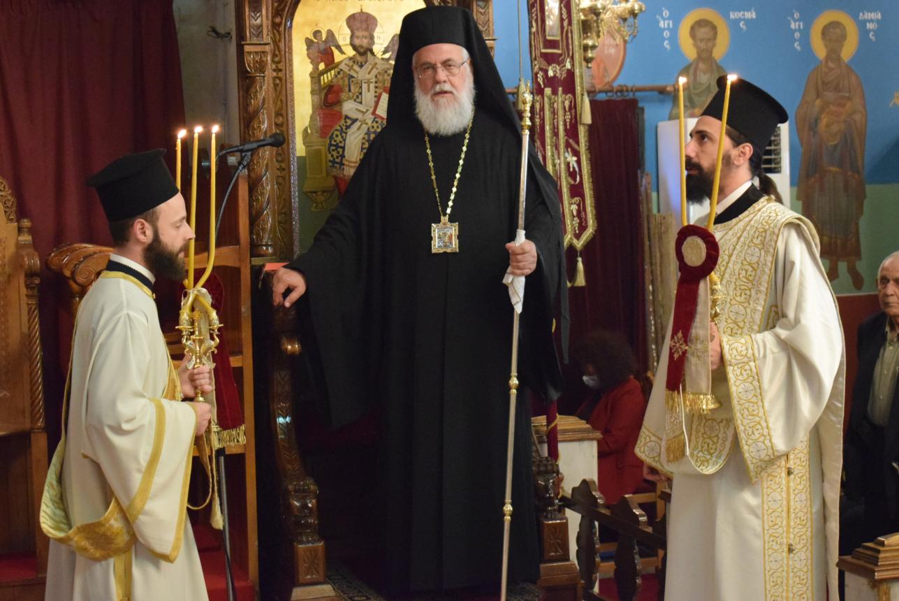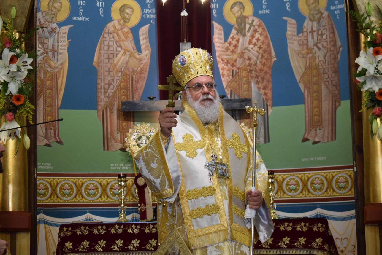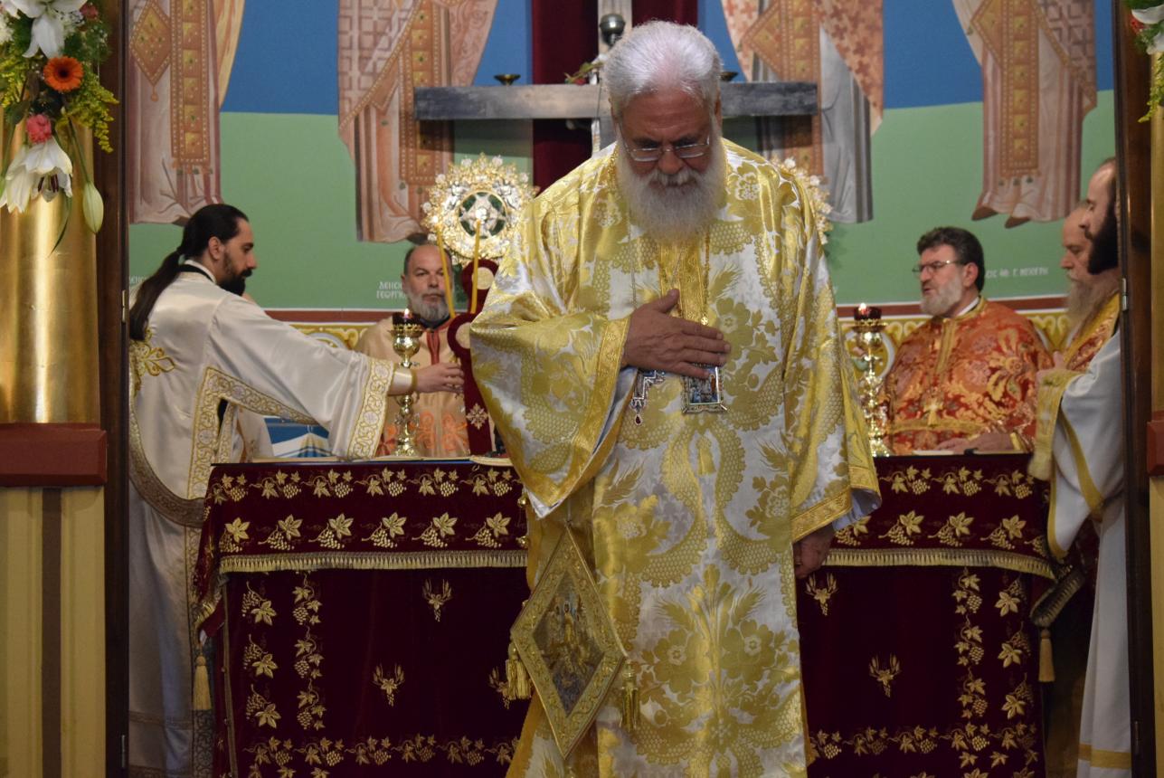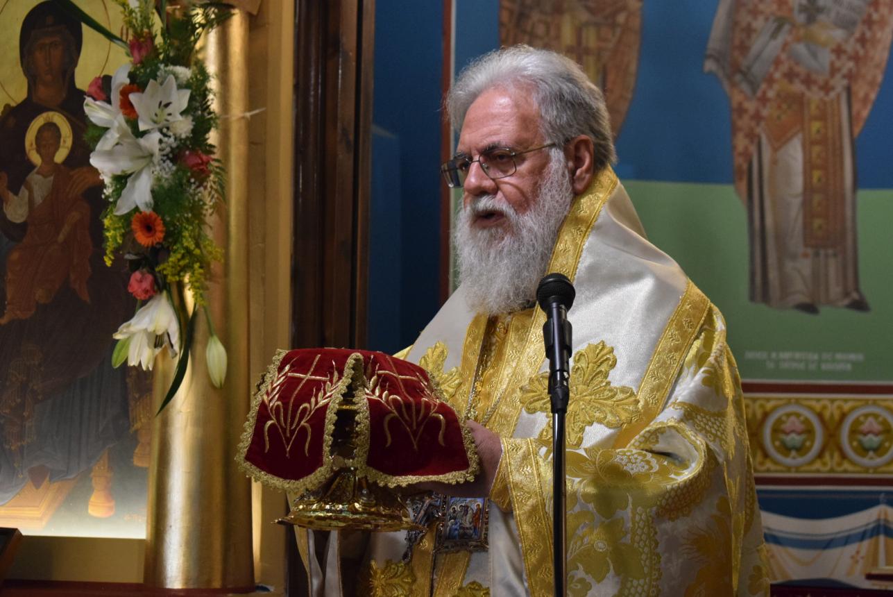 Στην ομιλία του ο Σεβασμιώτατος ξεκινώντας από τα λόγια του Χριστού προς τον Θωμά: «ὅτι ἑώρακάς με, πεπίστευκας· μακάριοι οἱ μὴ ἰδόντες καὶ πιστεύσαντες», αναφέρθηκε στο σημαντικό γεγονός της αμφιβολίας του αποστόλου Θωμά προς τους υπόλοιπους μαθητές για την εμφάνιση του αναστημένου διδασκάλου τους. Παρά την αμφιβολία, ο Θωμάς είδε τον ενθουσιασμό των μαθητών και μη αμφισβητώντας τη χαρά τους, παρέμεινε στην κοινότητά τους, περιμένοντας την προσωπική αποκάλυψη του Χριστού προς αυτόν. Ο εορταζόμενος Άγιος Γεώργιος ανήκει στη χορεία εκείνων που δεν είδαν και επίστευσαν εν καθαρά καρδία. Απέδειξε στην πράξη τη βίωση του θαύματος της αναστάσεως ως θεμελίου της ζωής της Εκκλησίας.