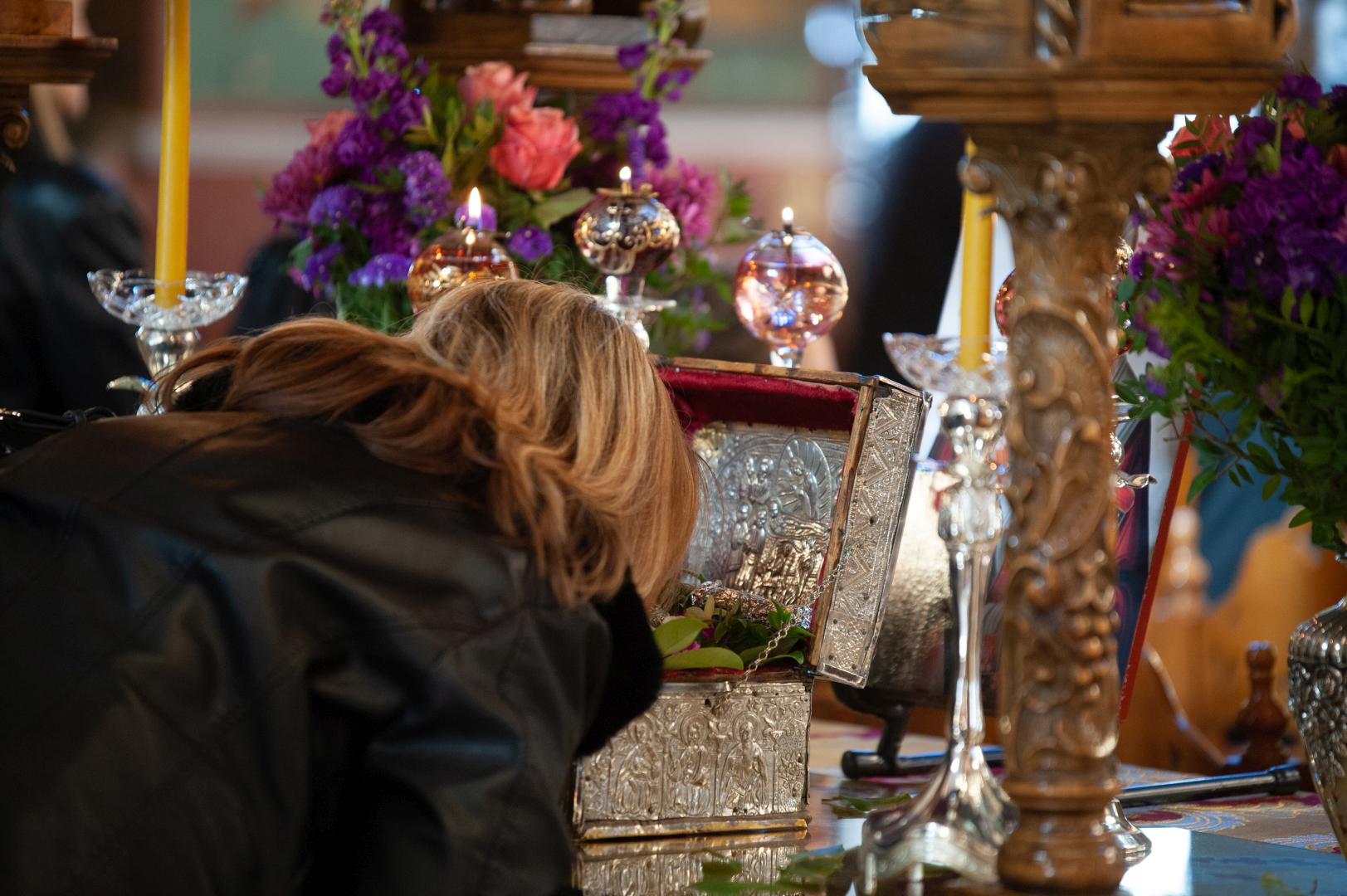 Αμέσως μετά την υποδοχή τελέστηκε Δοξολογία και Ιερά Παράκληση στον Άγιο Παρθένιο. Ακολούθησε το Μεγάλο Απόδειπνο.