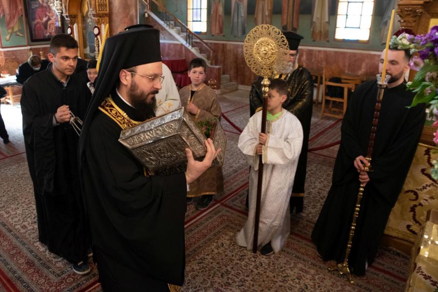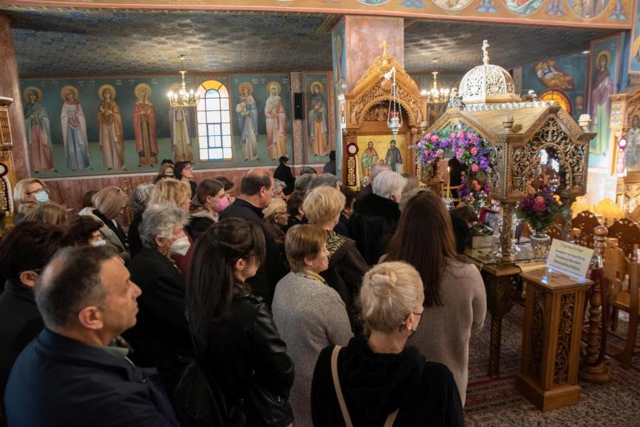 Με λαμπρότητα έγινε η υποδοχή της τιμίας κάρας του Αγίου Παρθενίου, Επισκόπου Λαμψάκου, στον Ιερό Ναό Αγίας Βαρβάρας Ιλίου, το απόγευμα της Πέμπτης 30 Μαρτίου 2023.